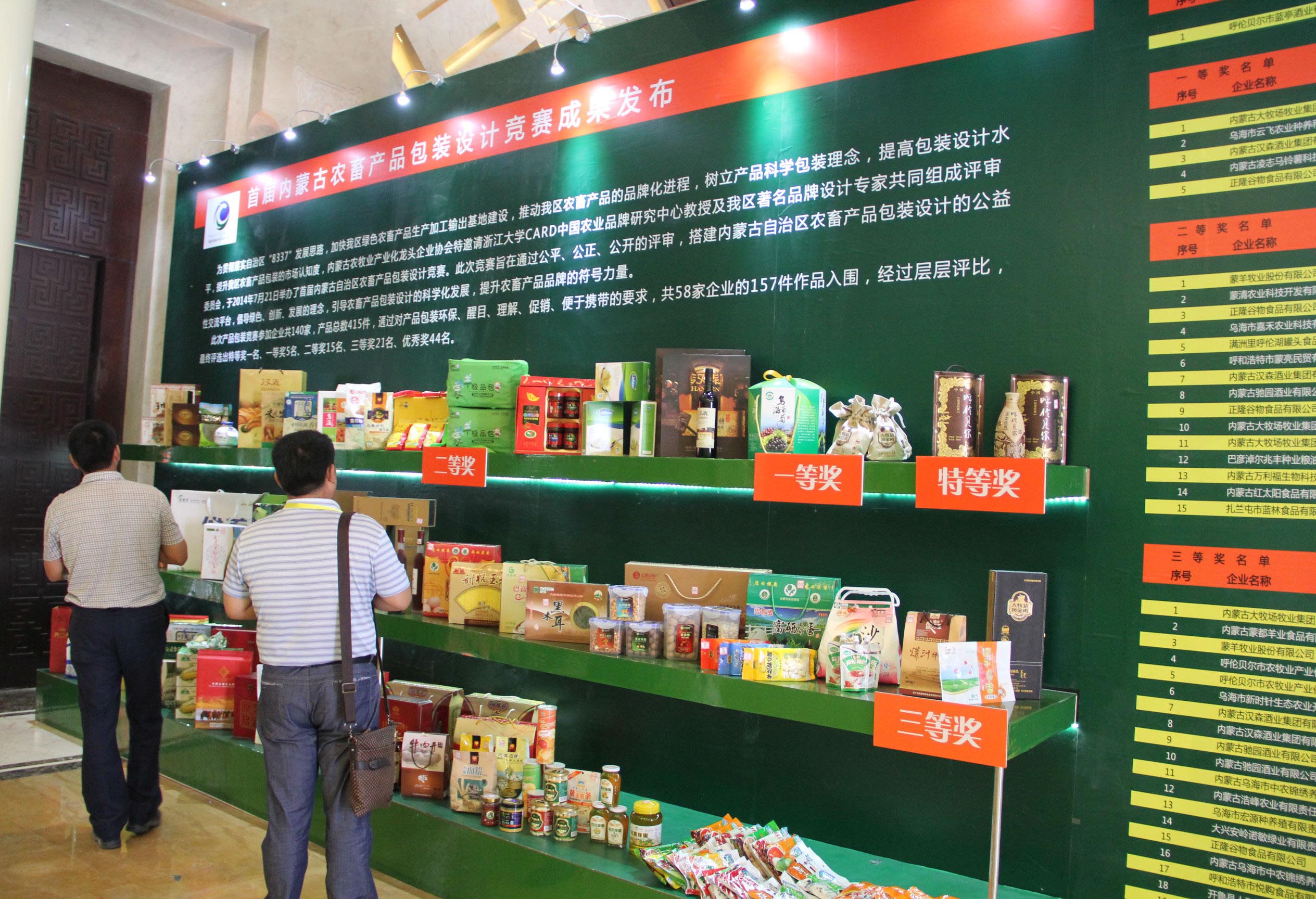 本次綠博會的最大亮點在于由農(nóng)牧業(yè)廳授權,在中國·內蒙古綠色農(nóng)畜產(chǎn)品博覽會組委會的大力支持下,協(xié)會認定的2014(第二屆)內蒙古“名優(yōu)特”農(nóng)畜產(chǎn)品名單和首屆內蒙古農(nóng)畜產(chǎn)品包裝設計競賽獲獎產(chǎn)品在綠博會上展出。此次共有76家企業(yè)生產(chǎn)的143個產(chǎn)品被認定為內蒙古“名優(yōu)特”產(chǎn)品,共有86件產(chǎn)品在包裝設計大賽中獲獎,其中特等獎1名、一等獎5名、二等獎15名、三等獎21名、優(yōu)秀獎44名。