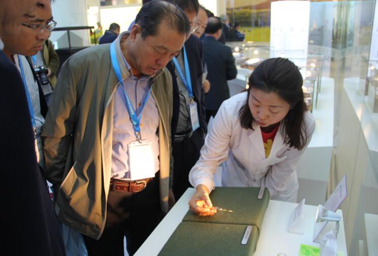 內(nèi)蒙古農(nóng)牧業(yè)產(chǎn)業(yè)化龍頭企業(yè)協(xié)會執(zhí)行會長兼秘書長林永亮觀看企業(yè)介紹新納米技術(shù)