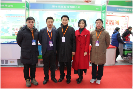 中國農(nóng)業(yè)產(chǎn)業(yè)化龍頭企業(yè)協(xié)會(huì)副秘書長李現(xiàn)洲(中)與協(xié)會(huì)會(huì)長閆樹春、常務(wù)秘書長劉俊青在蒙羊牧業(yè)展位前合影