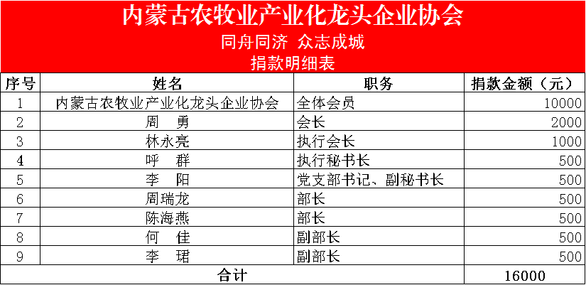 三、“一方有難,八方支援”,截止目前,在協(xié)會會長周勇的帶領(lǐng)下,協(xié)會秘書處共募集抗疫捐款1.6萬元,結(jié)合地方所需,已于2月23日以現(xiàn)款形式捐贈給呼和浩特市紅十字會,用于呼和浩特市疫情防控工作。
