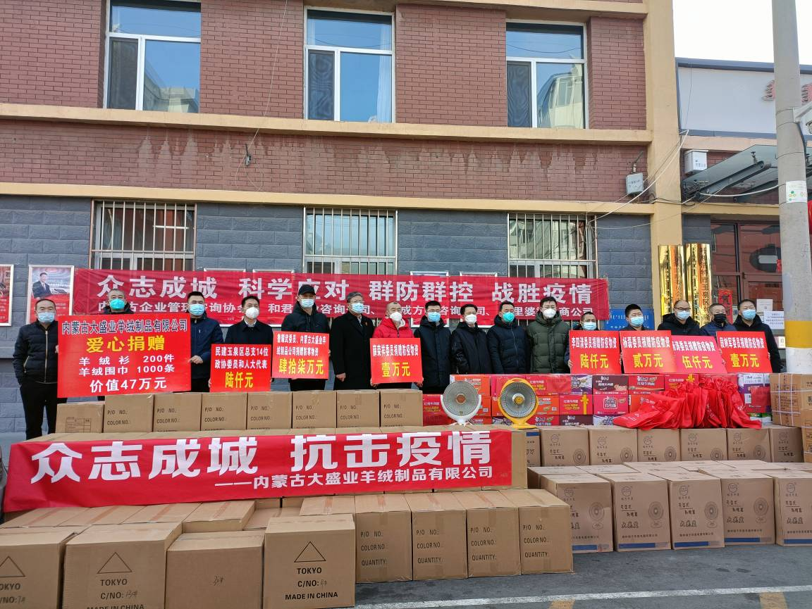 6、副會長單位-內(nèi)蒙古大盛業(yè)羊絨制品有限公司:2月21日,將價值47萬元的200件羊絨衫、1000條羊絨圍巾捐贈給玉泉區(qū)紅十字會,為抗疫人員送去溫暖。