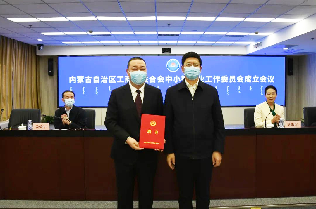 會(huì)上,內(nèi)蒙古工商聯(lián)黨組成員、副主席姜愛軍宣讀《內(nèi)蒙古自治區(qū)工商業(yè)聯(lián)合會(huì)關(guān)于成立自治區(qū)工商聯(lián)中小微企業(yè)工作委員會(huì)的決定》。聘任內(nèi)蒙古農(nóng)牧業(yè)產(chǎn)業(yè)化龍頭企業(yè)協(xié)會(huì)會(huì)長、錫林郭勒盟羊羊牧業(yè)股份有限公司董事長周勇為內(nèi)蒙古工商聯(lián)中小微企業(yè)工作委員會(huì)主任,聘任內(nèi)蒙古宇航人高技術(shù)產(chǎn)業(yè)有限責(zé)任公司董事長邢國良、呼和浩特市順友汽車租賃有限責(zé)任公司總經(jīng)理賈榮、內(nèi)蒙古蒙源文化發(fā)展有限公司董事長吳雙鷹等為副主任,聘任內(nèi)蒙古工商聯(lián)經(jīng)濟(jì)部部長董維民、內(nèi)蒙古金廈建筑工程有限公司董事長金玉虎、錫林郭勒盟羊羊牧業(yè)股份有限公司副總經(jīng)理袁軍為秘書長、副秘書長。并向自治區(qū)工商聯(lián)中小微企業(yè)工作委員會(huì)主任、副主任、秘書長頒發(fā)了聘書。