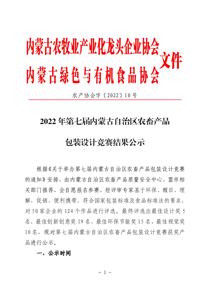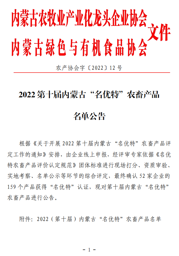 2022第十屆內蒙古“名優(yōu)特”農畜產品名單公告