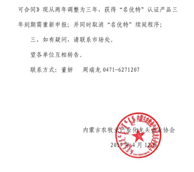 關(guān)于“名優(yōu)特”使用期限調(diào)整及取消“名優(yōu)特”續(xù)延程序的通知