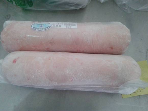 用排酸后的羔羊肉卷成圓柱狀,稱之為羔羊肉卷。做成長方形