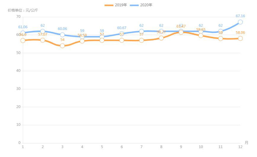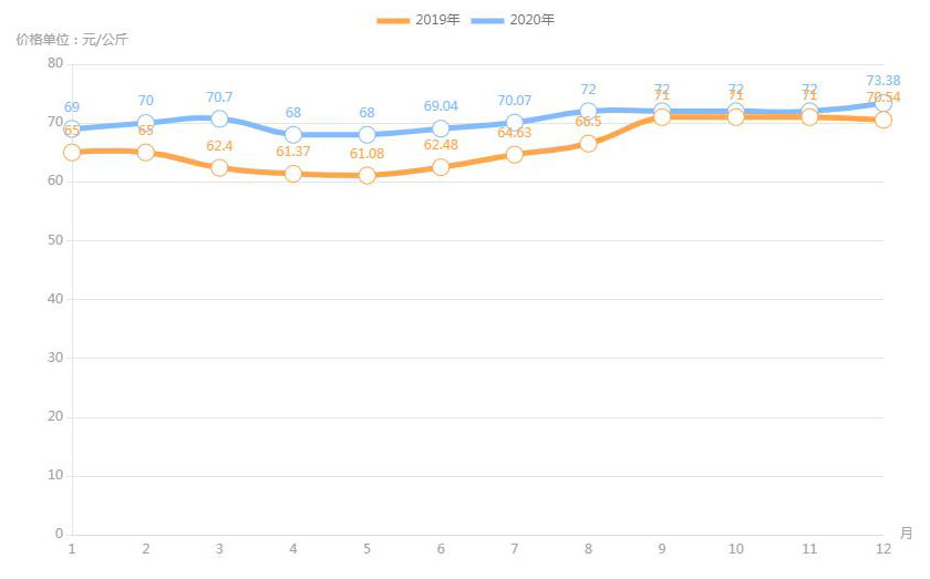 據(jù)農(nóng)業(yè)農(nóng)村部對全國500個(gè)集貿(mào)市場監(jiān)測,2020年12月第二周,全國羊肉價(jià)格為每公斤82.66元,連續(xù)八周上漲,同比上漲3.6%。業(yè)內(nèi)人透露,目前,養(yǎng)羊成本上升;人們對羊肉品質(zhì)的要求也越來越高,消費(fèi)者更加傾向于選擇有質(zhì)量認(rèn)證標(biāo)志和品牌的羊肉產(chǎn)品,特別是優(yōu)質(zhì)、味美的新鮮羊肉,加上羊肉產(chǎn)量不高,供應(yīng)不足,拉動了羊肉價(jià)格上漲。